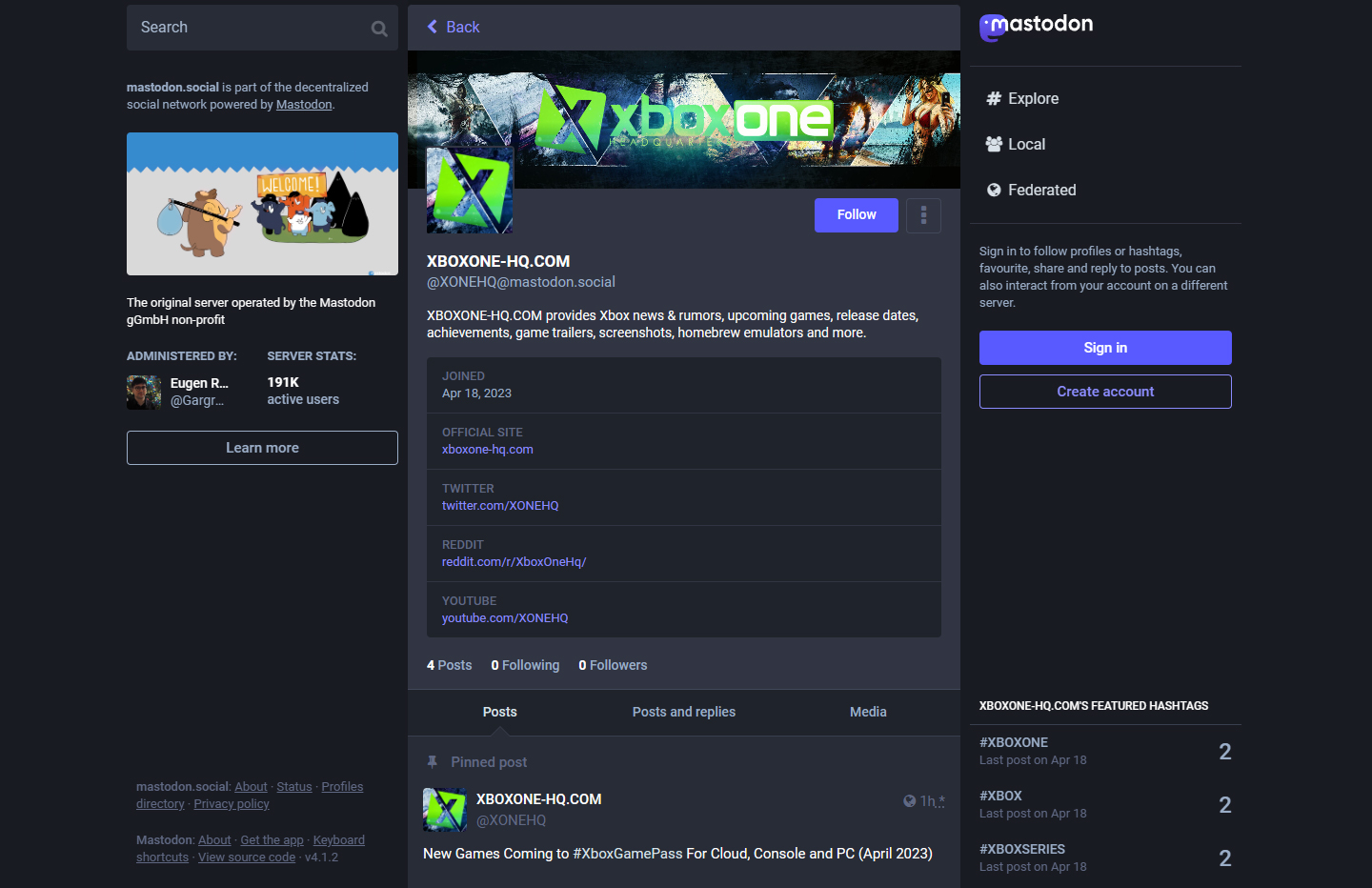 Come follow XBOXONE-HQ.COM (@XONEHQ) on Mastodon, the decentralized social network made up of independent servers organized around specific themes, topics, and interests.