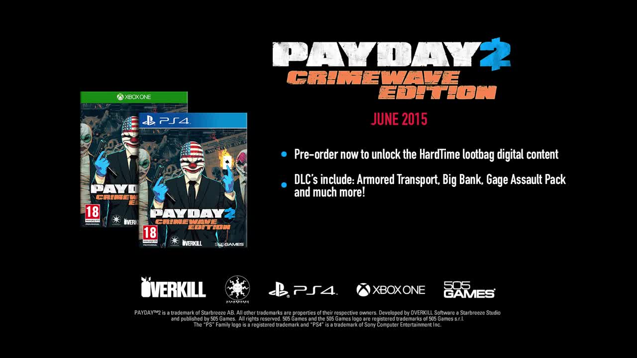 PAYDAY 2 Crimewave Edition brings more heists, more weapons and more gadgets to XBOX One and PlayStation 4 in full 1080p this June!